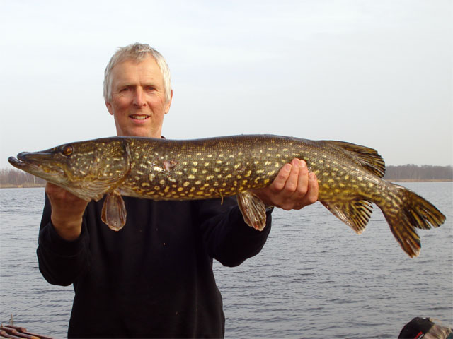 Anton v/d Weijden met zijn snoek van 85cm.