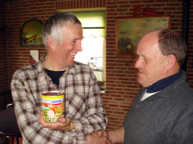 Hij mocht de wisselkom en het grootste blik snert in ontvangst nemen.